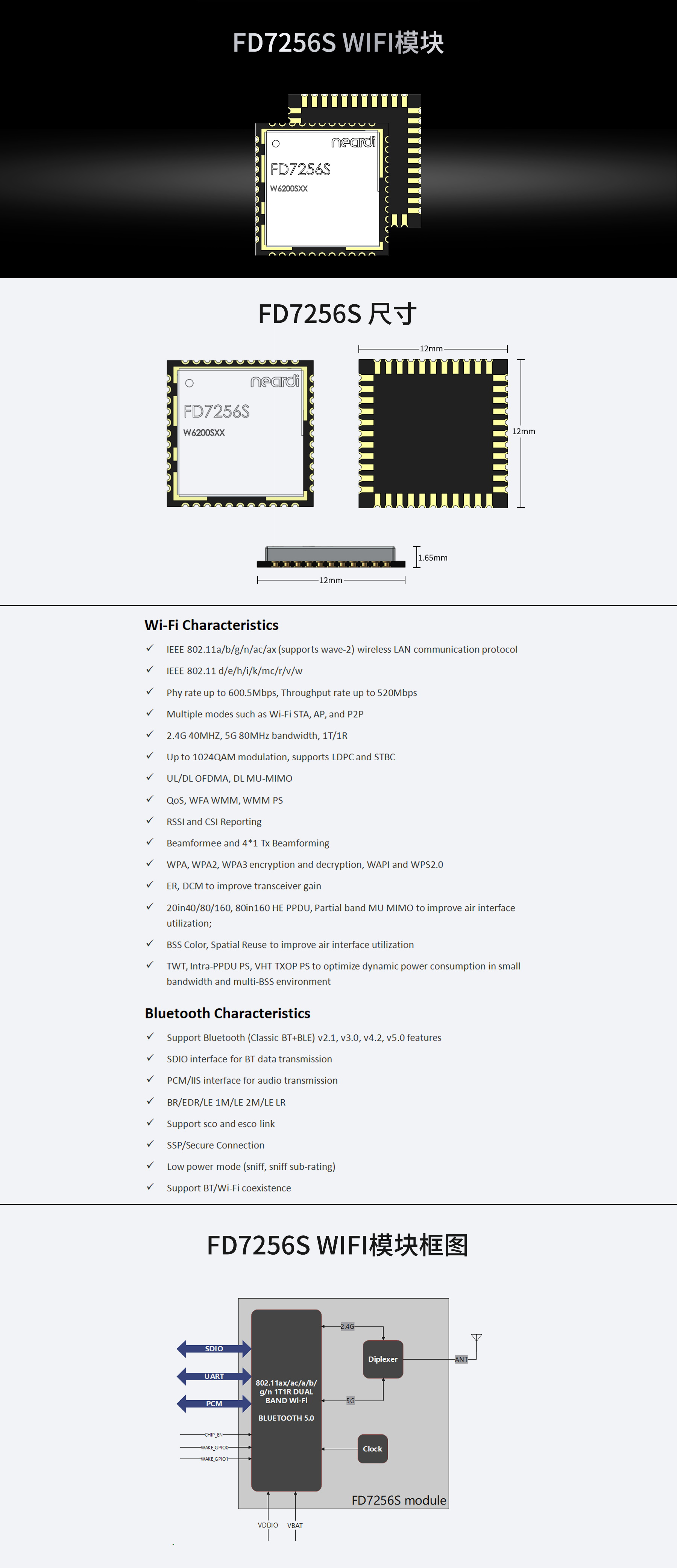 Product description | 802.11ax/ac/a/b/g/n 1T1R dual band Wi-Fi and Bluetooth 5.0 comb module |
